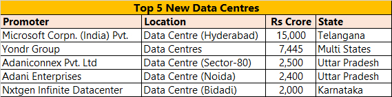 India's exponential growth in data consumption and cloud computing in recent years has created huge demand for data centres. To meet this rising demand, investment in setting up data centres increased impressively since 2020. During the first six months of FY22, 19 more data centreswere announced. Around Rs 34,500 crore will be invested in setting up these centres planned across major cities of India. Some of the large proposed data centres are: